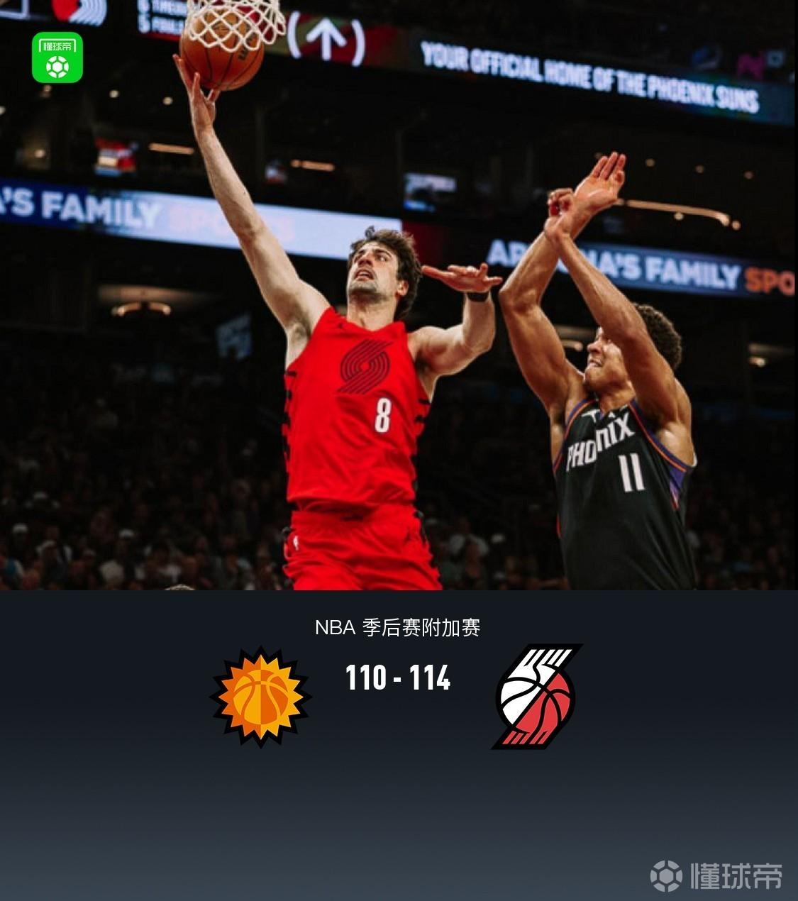 开拓者114-110太阳以西部第七晋级季后赛,阿夫迪亚41+7+12,格林35分