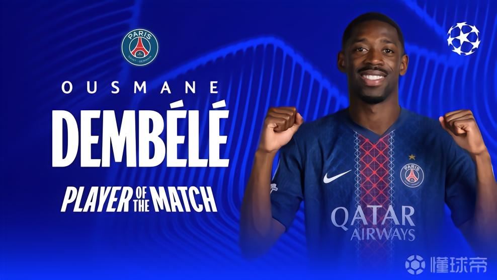 最终经过评选,登贝莱当选欧冠官方全场最佳球员。