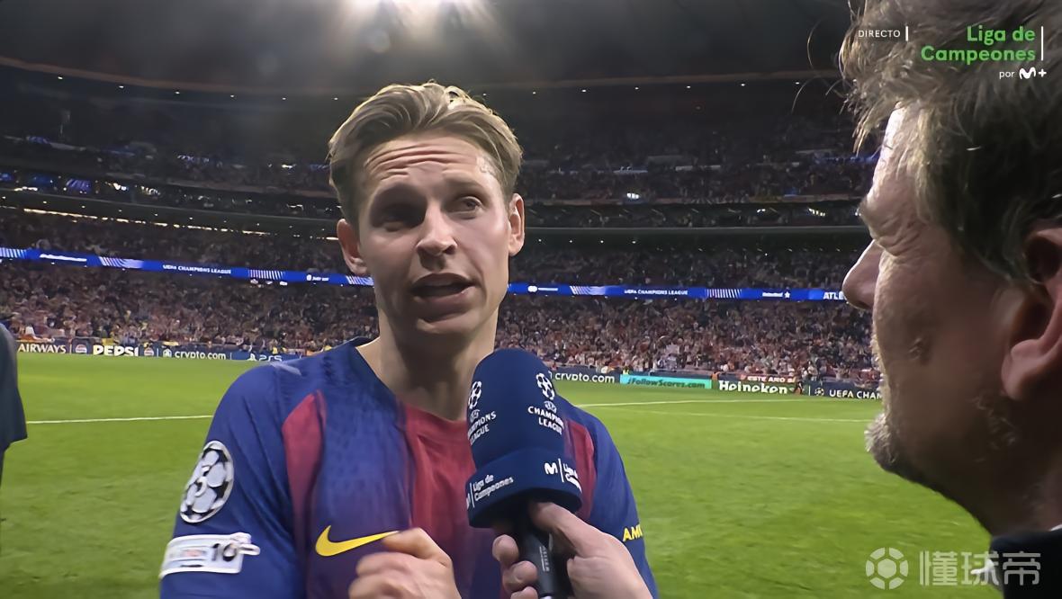 欧冠1/4决赛次回合,虽然巴萨在客场2-1击败马竞,以总比分2-3遗憾出局,中场大将德容赛后代表球队接受了Movistar+的采访。