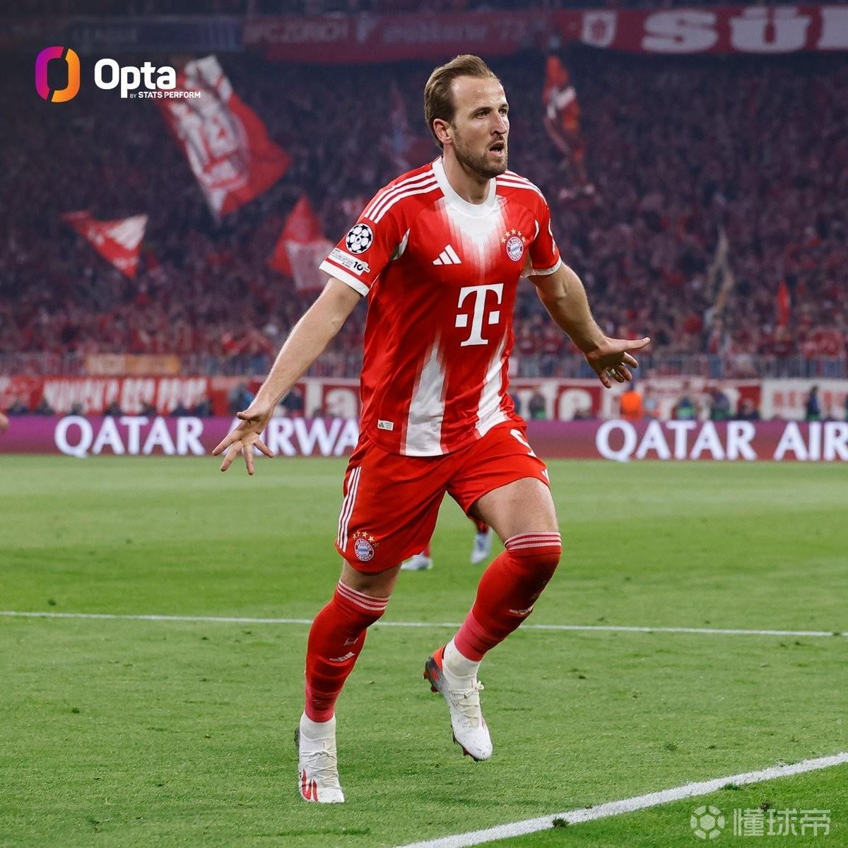 在与皇家马德里的欧冠1/4决赛次回合比赛中打入一球后,凯恩成为本赛季首位在各项俱乐部赛事中打入50球的五大联赛球员。