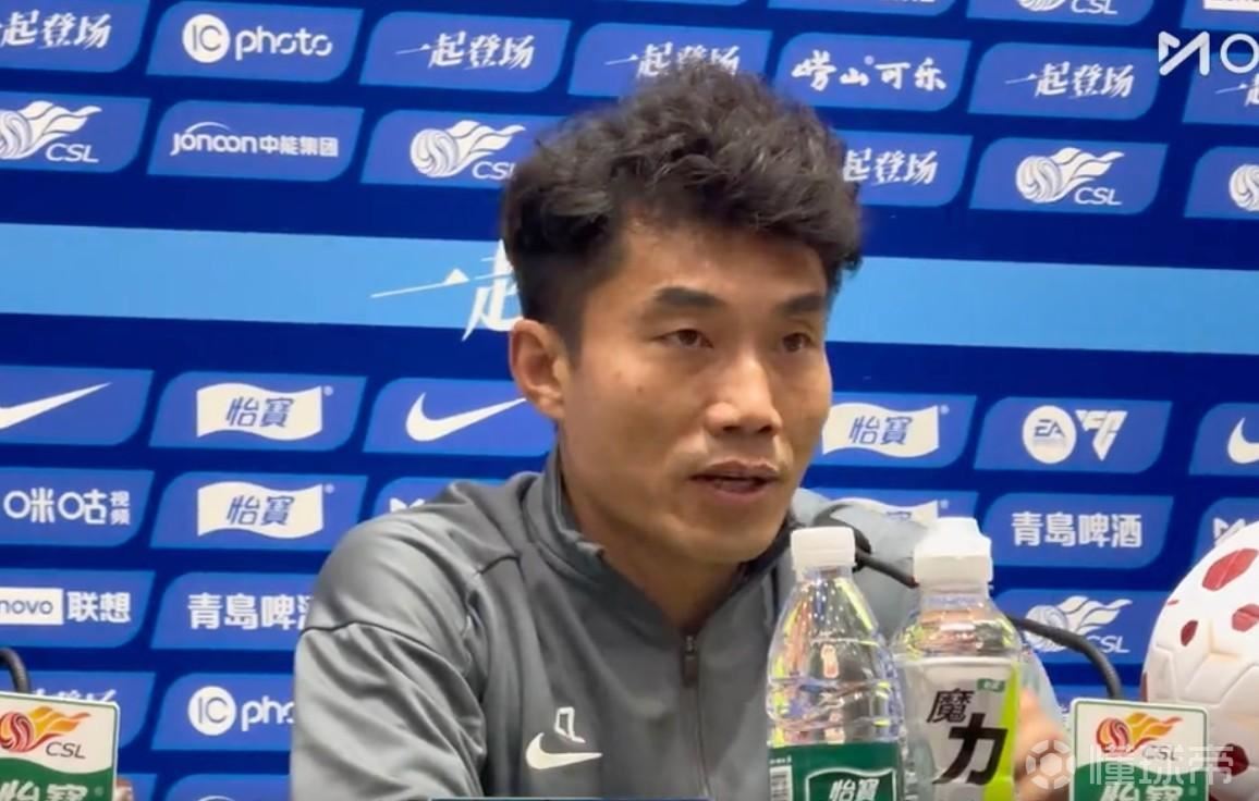 4月16日,中超联赛青岛德比赛前新闻发布会,西海岸主帅郑智和球员董宇出席。