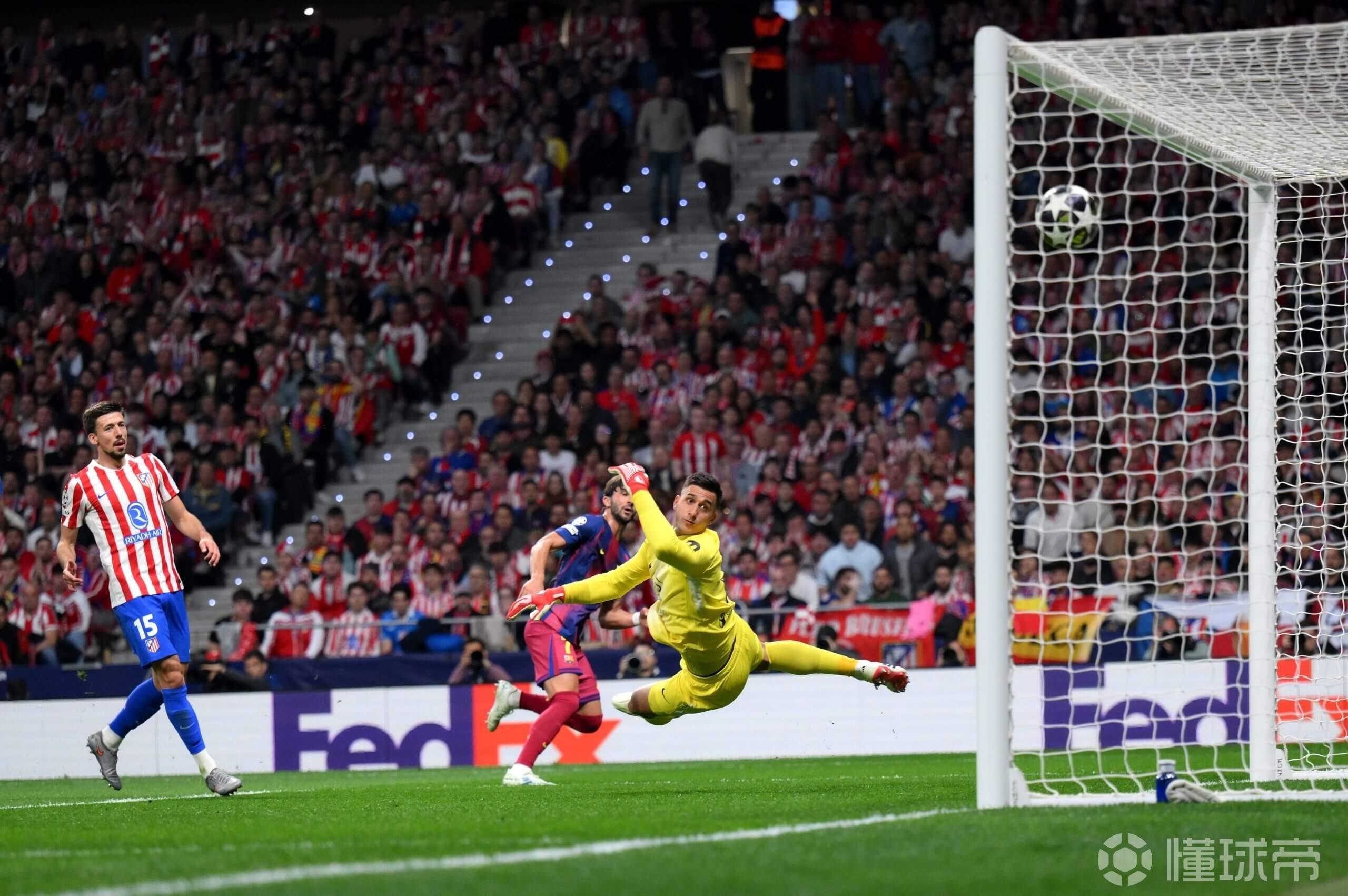 戏剧性场面在两端不断上演,尤其是在巴萨后卫埃里克-加西亚被红牌罚下之后。即使面对十人作战的巴萨,马竞仍不断送出机会——最后阶段,莱万多夫斯基和阿劳霍都在无人盯防的情况下近距离头球攻门。