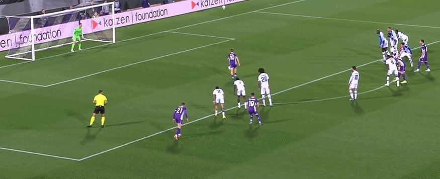 第53分钟,恩杜尔禁区外远射破门!佛罗伦萨2-1水晶宫