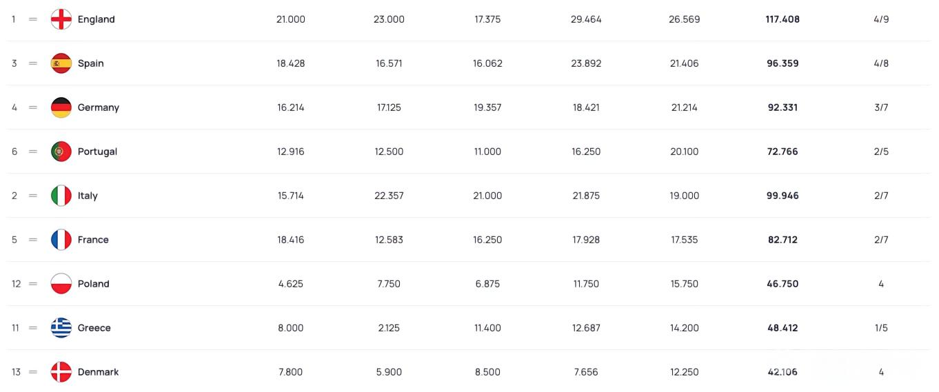 按照欧足联现行规则,2025-26赛季单赛季系数排名前两位的联赛,将获得2026-27赛季欧冠额外席位。欧足联已确认,英超提前锁定其中一个名额,另一个名额大概率在西甲和德甲之间产生。