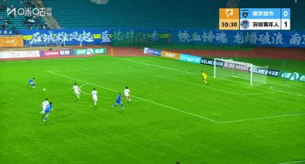 第35分钟,深圳快速反击,加里塔低射破门,南京城市0-2深圳青年人